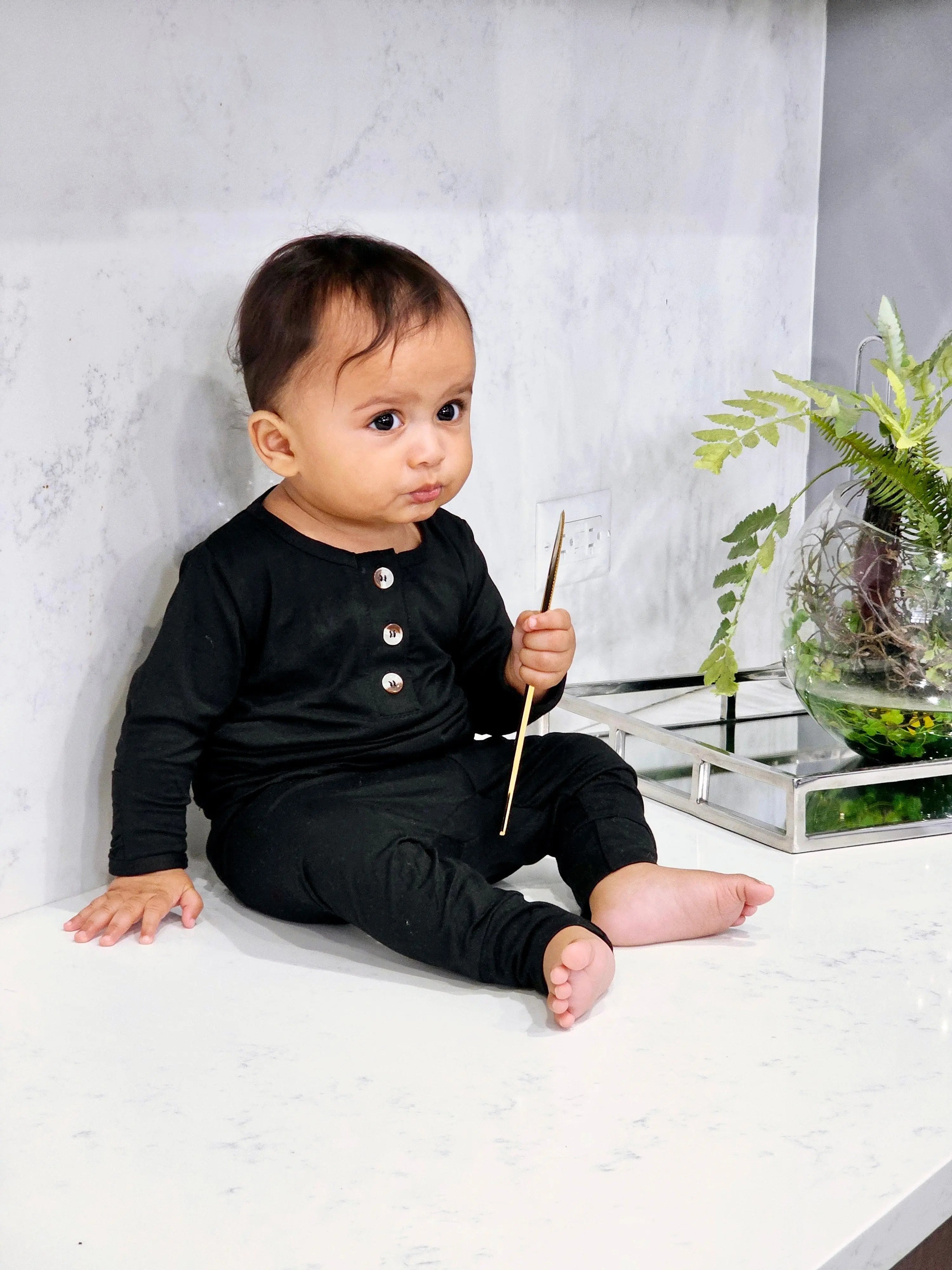 The outfit includes a charming top and bottom that can easily be mixed and matched, providing versatility for any occasion. The matching hat not only looks cute but also serves a practical purpose by keeping your baby's head warm. With its stylish black design, this outfit stands out while ensuring that your baby remains comfortable at all times. The ease of dressing and undressing is another bonus, making parents' lives simpler.